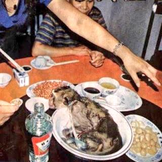 Raw alive monkey brain is a special dish affordable only by very rich people and is possible to order it only in Guangdong and once in Hong Kong.